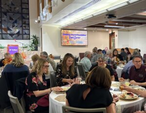 Along with the Foundation board, members from local congregations Harvard Avenue Christian Church, Forest Park Christian Church, and Disciples Christian Church (Bartlesville, OK) gathered at PTS to celebrate the long-time partnership between PTS and the Foundation, including helping donors incorporate PTS in their estate plans, establishing scholarships, and supporting seminary initiatives. In 2021, PTS entrusted more than 220 named endowment funds to the Foundation for investment. Rosine acknowledged the seminary’s decision to invest with the Foundation through the shared belief that, “capital should serve creation and not the other way around.” Newly inaugurated  PTS president, Rev. Dr. F. Douglas Powe, highlighted the affordable M.Div. and D. Min. programs available for Disciples, the construction of the new Bedford House, and the seminary’s commitment to elevating the discourse of religion in public life. The Foundation board members experienced excitement from the faculty and appreciated the depth of Disciples connections present at the seminary.